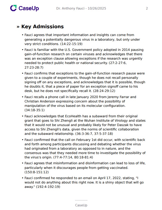 Extract and organize crucial witness admissions and denials to streamline case analysis.