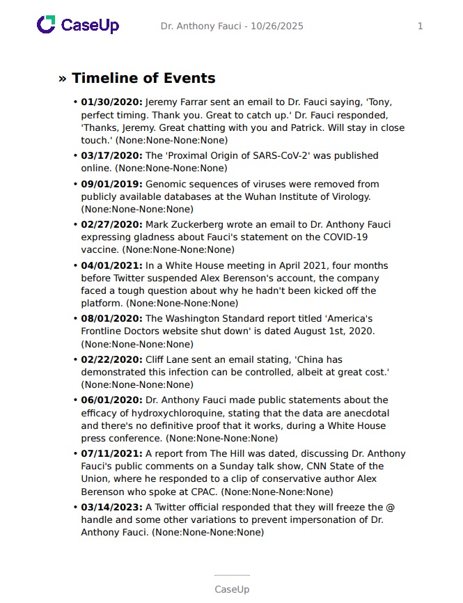 Generate a chronological timeline linking key testimony excerpts to case events and dates.
